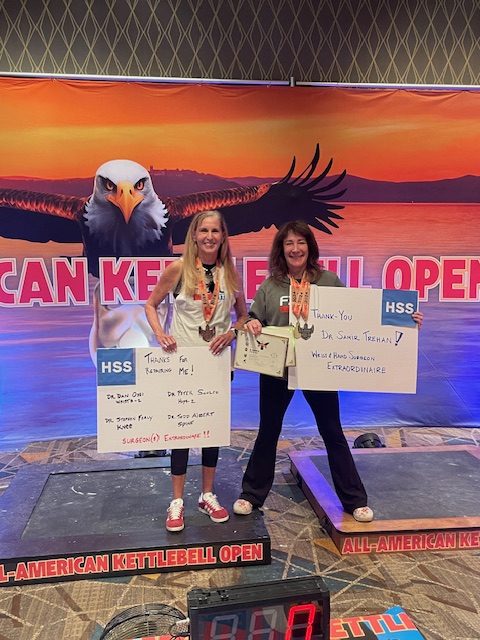 I had just started doing Kettlebell Sport earlier in the year, but because of the broken wrist, couldn’t use my left hand. So, I simply trained with one arm. My team and I continued to work hard and competed in the All American Kettlebell Open in Atlantic City in October 2024. Not only did we do well as a team, we each earned first place in our respective events! We are looking to do another competition in December.
